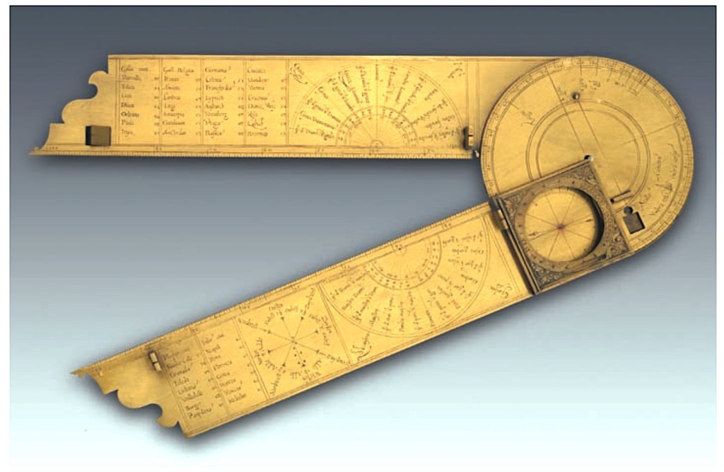 The sector, also known as a sector rule, proportional compass, or military compass, is a calculating instrument used throughout the sixteenth to nineteenth century. It consists of two rulers of equal length joined by a hinge. Several sets of scales are inscribed upon the instrument which enable various mathematical calculations.