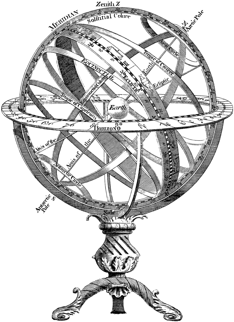 In the 1390’s, Blasius of Parma, a professor of optics at Padua, wrote commentaries on Euclid, Alhazen, Witelo and Peckham, confronting optical theory with practical surveying methods. He also used Ptolemy’s Planisphere as a textbook. By way of demonstration he employed an armillary sphere, a three-dimensional model of the earth reduced to circles of the poles and the circles of Cancer, Equator and Capricorn along with the ecliptic. Using candles he projected these circles onto the walls of a darkened room.