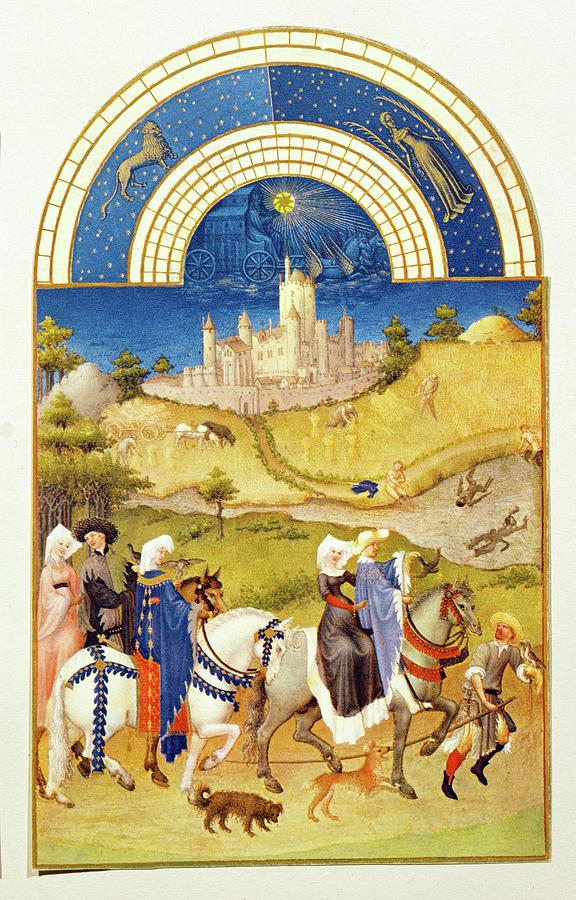 Meanwhile, the Limbourg brothers in the North were producing the Very rich hours of the Duke of Berry with spatially convincing picture-postcard like miniatures of St. Michael’s Mount and a number of the duke’s great chateaux. Here patronage was almost certainly a factor. As artists began working for individual potentates, it became politic and even necessary, to include topographical views of their chateaux and other estates in the backgrounds.