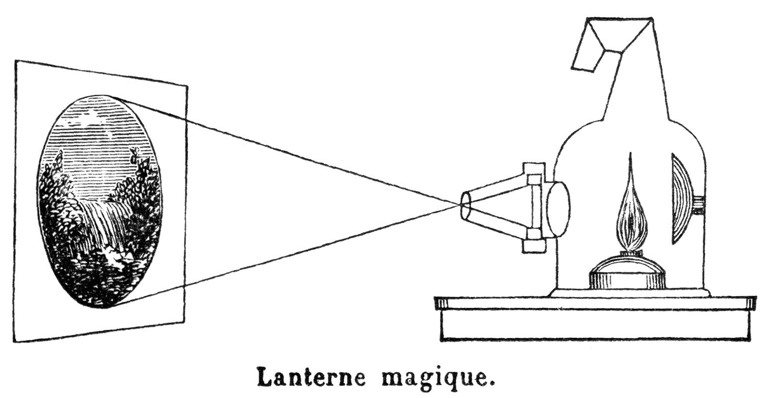 The magic lantern was developed in the 17th century and commonly used for entertainment purposes; and different versions (mainly for displaying non-moving images) were in widespread use from the 18th century until the mid-20th century (including the overhead and 35 mm photographic slide projector(s)), which where later superseded by digital projectors. Interestingly, magic lanterns can be considered the direct a forerunner of photographic and digital cinema projectors.