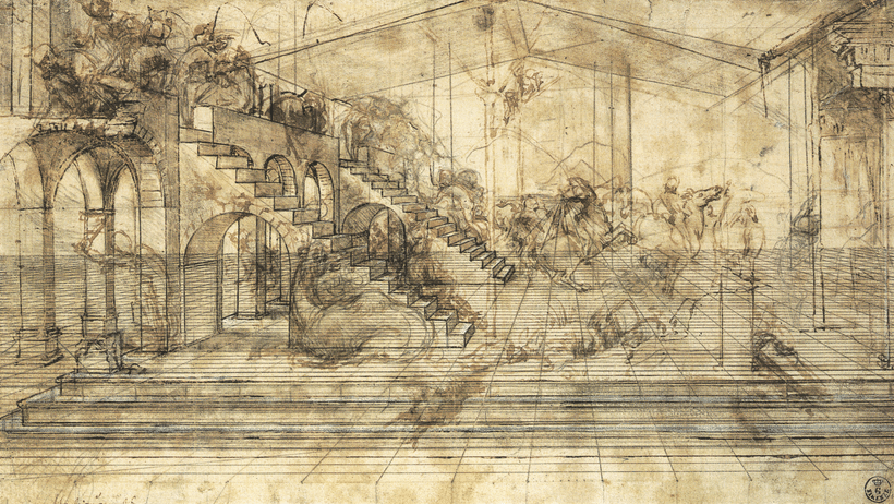 Linear perspective is a well-known form of graphical perspective, that developed slowly over several hundred years. Below we see a sampling of images involving the early application of linear perspective, which is employed to create various artistic effects (but most importantly, illusion of spatial depth).