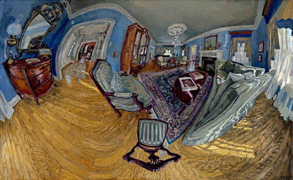 As artistic techniques evolved over the next 4-500 years, perspective was used to create many illusory three-dimensional spaces. Examples include trompe-l’oeil, view d’optique, capriccios, intarsia, grotesques, anamorphic views, quadrature (illusionistic ceiling painting), the illusion of expansive mountain-top vistas, and large-scale panoramas etc.
