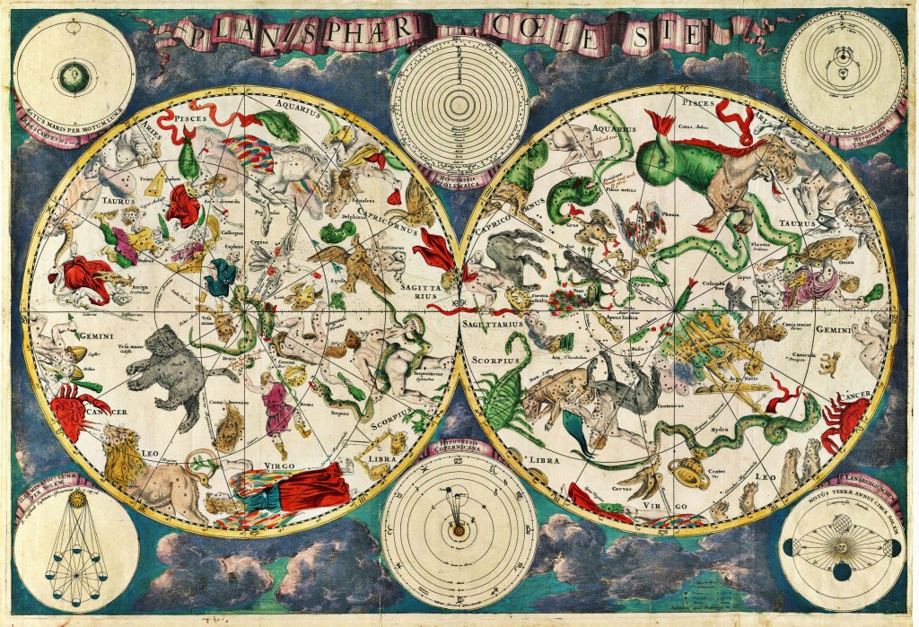 A star map / chart is a celestial night sky map with astronomical objects laid out on a grid system. They identify and locate constellations, stars, nebulae, galaxies, and planets. They have been used for human navigation since time immemorial. Note that a star chart differs from an astronomical catalogue, which lists or tabulates astronomical objects for a particular purpose. Tools using a star chart include the astrolabe and planisphere.